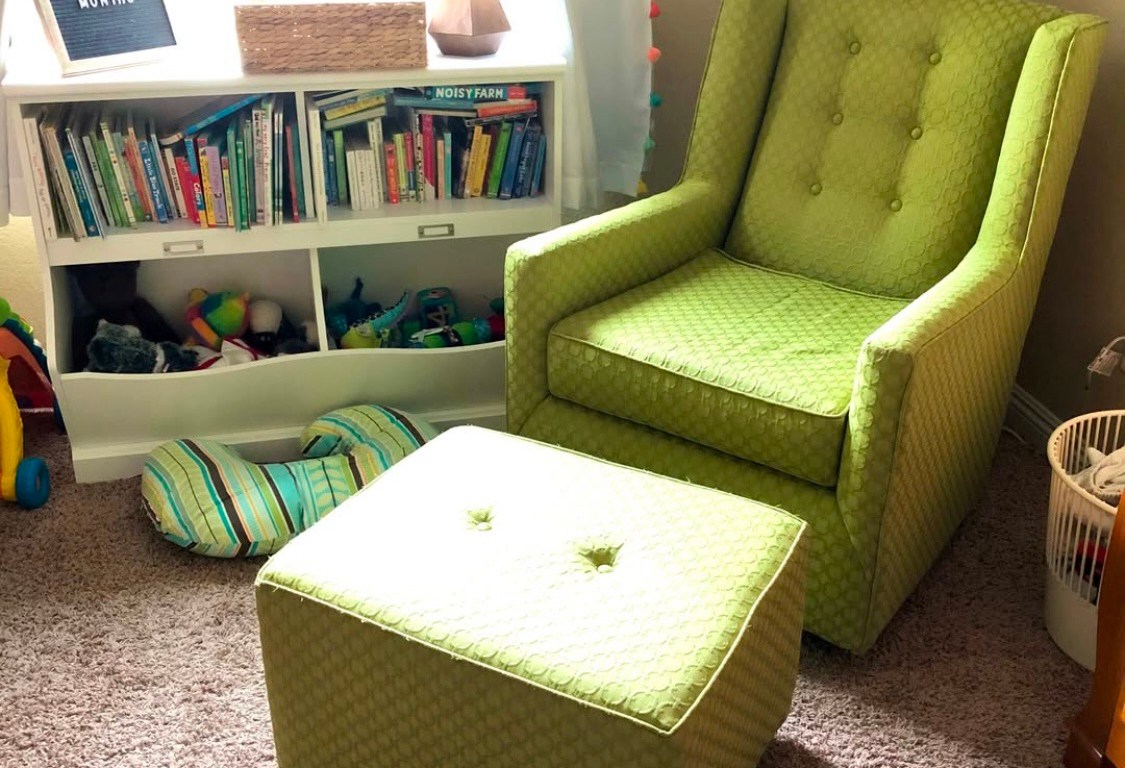 In a green chair in the middle of the night, making notes on my phone while breastfeeding.